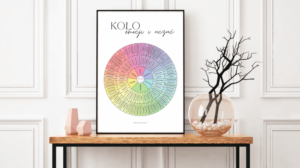 Wskazówka: Korzystaj z Koła emocji i uczuć – pozwala dostrzec subtelne różnice między frustracją a gniewem, zakłopotaniem a wstydem. To jak nauka nowego języka – słów, które pomogą Ci lepiej wyrażać siebie i swoje potrzeby.