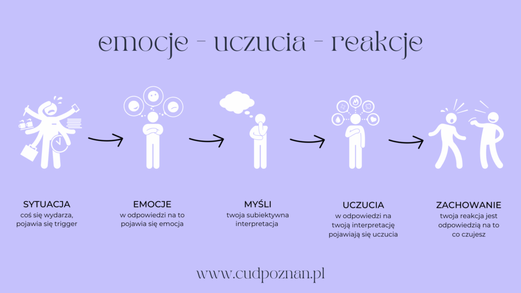 Każda emocja rodzi uczucie, a każde uczucie prowadzi do reakcji. Świadomość tego cyklu pozwala odzyskać wpływ nad tym, jak reagujesz – zamiast działać automatycznie, zaczynasz wybierać świadomie.